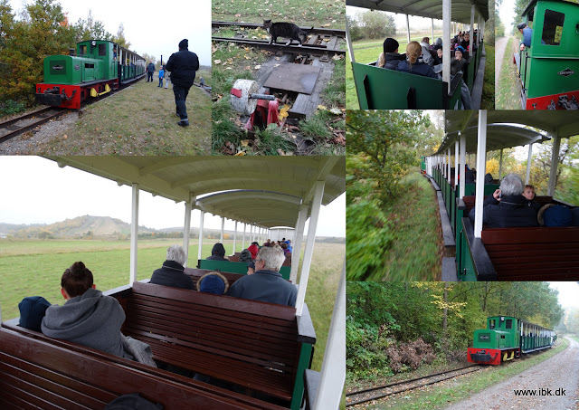 Forsinkelsen blev indhentet og nusseregnen holdt op. Det blev en herlig togdag med næsten firs rejsende, der blev kørt ud i et Hedeland, der stod smukt med efterårsfarver og de flotte, orange bær fra havtornebuskene satte nærmest ild til landskabet. På Naturlegepladsen var der mange folk og endda nogen, der havde tændt op i grillen. Efterårshygge når det er bedst.