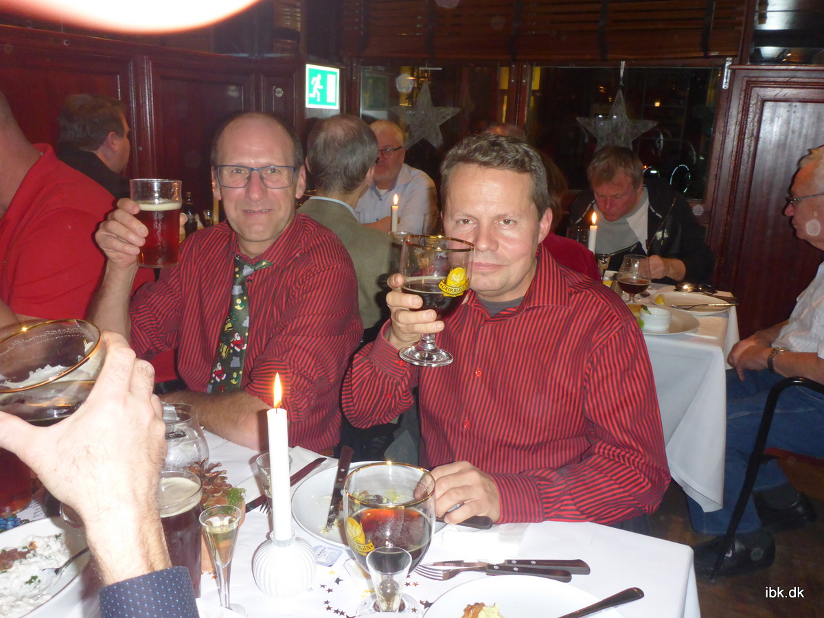 Med julens traditioner følger jo også en julefrokost – men veteranbanens medlemmer skal jo køre juletog i hele december, så af den grund indtog vi Bryggerården i Roskilde for en aften og fik en dejlig julebuffet med tilhørende drikkevarer – eller fik og fik. Vi betalte det meste selv – banens penge skal jo gå til banen! Det blev – som det altid er – en rigtig hyggelig aften og med et fornemt fremmøde på 27 medlemmer.