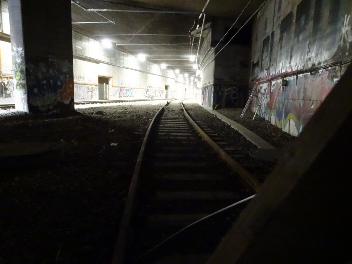 | I den modsatte retning af tunnellen går sporet videre mod Centralsjükhuset |