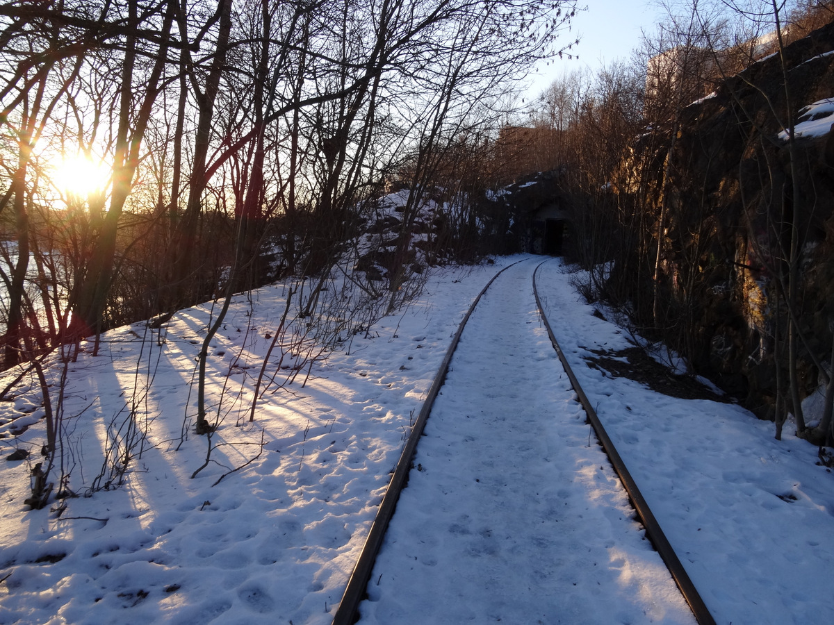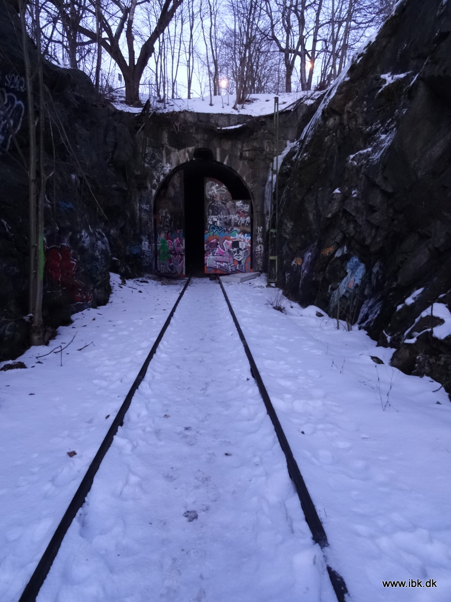 | Inde fra tunellen ud mod den lukkede port. Et fint spor… |