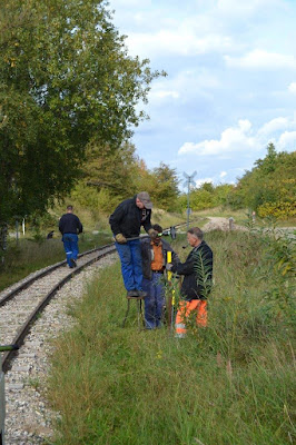 I klubbens nye sikkerhedsreglement er indført “Giv agt” mærker ved overkørsler med reduceret sigt. Forrige lørdag forberedte vi 10 styk af disse og vi fik i løbet af dagen opsat næsten alle sammen.