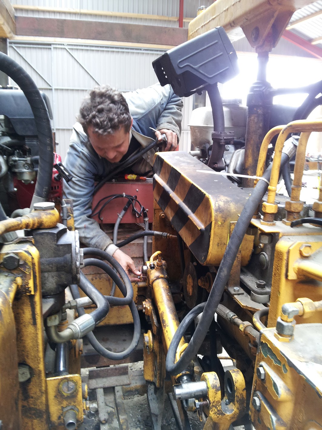 Lars er i gang med at montere hydraulikcylinderen på