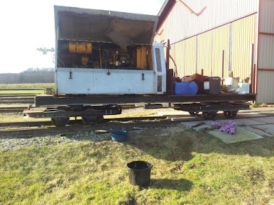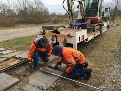 På grænsen til foråret, i hvert fald i følge kalenderen, valgte vi at henlægge baneafdelingens aktiviteter til vognhallen på Hedehusgaarden. Lars og Kenneth hentede tipvogne på Brandhøj; en med fingrus og en med nøddesten, og så benyttede vi resten af dagen til at få lagt de sidste fliser i vognhallen og lagt nøddesten omkring disse. Sideløbende med dette fik vi lavet service på vores kompressor, så den nu er klar til forårets sporaktiviteter.