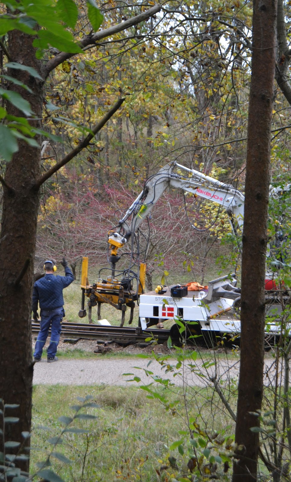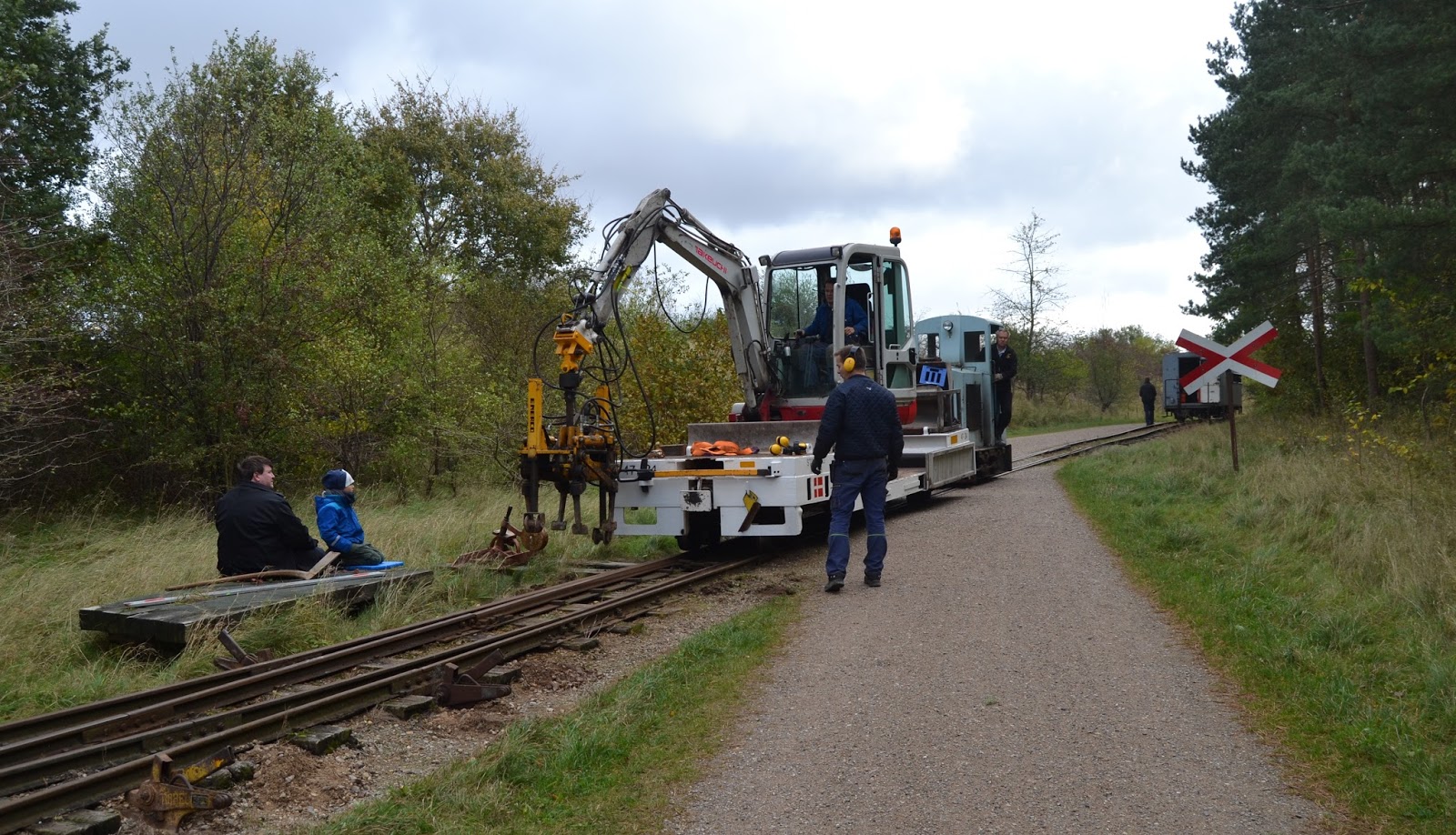 Så blev det efterår og storm. Selvom temperaturerne stadig er høje for årstiden, fik folkene i baneafdelingen vind i håret denne lørdag. Dagens hovedopgave var at understoppe det sydlige skifte på Sølund station, der på det seneste har udviklet en ‘lunke’. Inden skulle vi dog lige have flyttet Bedford-motoren til M 8 fra snedkerværkstedet til værkstedremisen. Det lykkedes uden de store problemer og Carsten boltrede sig med motoren i værkstedet resten af dagen.