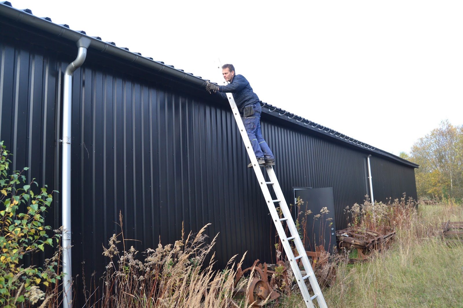 | Tagrenden på opbevaringshallens østside på vej op igen. |