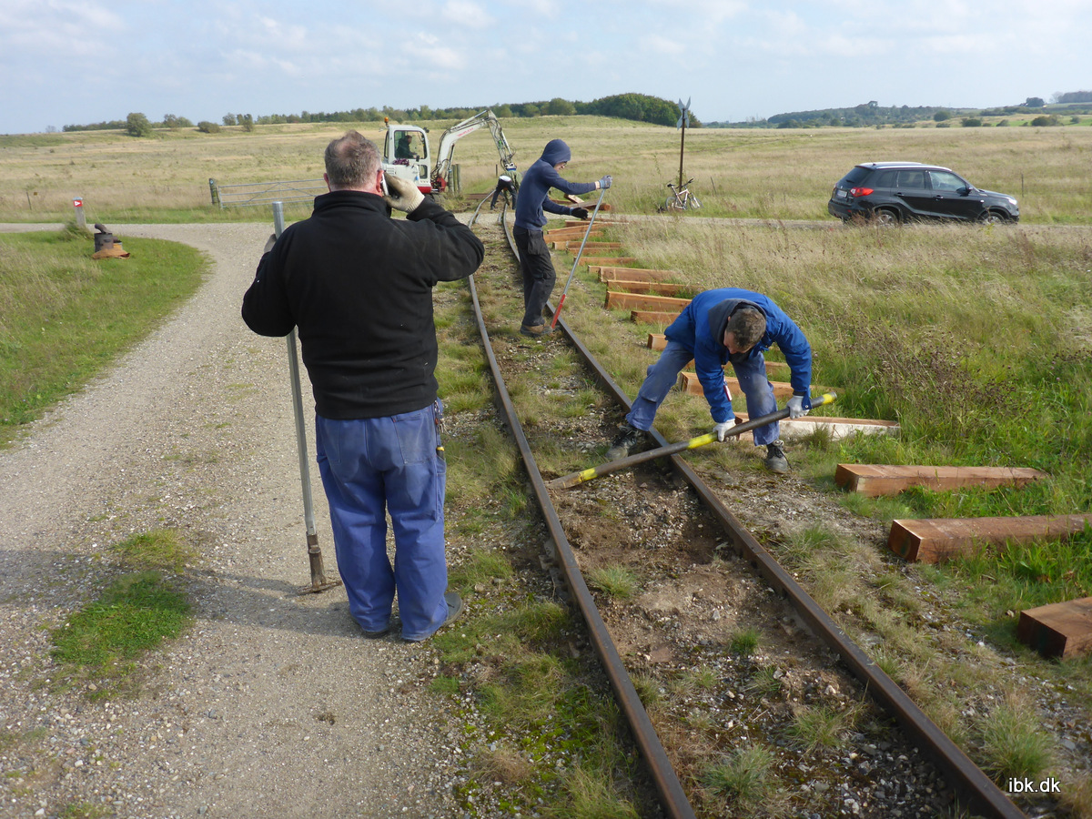 Banechefen havde udsendt en opfordring til at møde talstærkt op denne lørdag, da svellerne under overkørslen syd for kvægfolden skulle skiftes. For ikke at efterlade et ufærdigt stykke arbejde, så mødte vi derfor 11 mand på denne dag, hvor landet var delt i regn til vest og sol til øst – der var således fine betingelser til arbejdet. Fra Hedehusgården afgik to tog – et med arbejdsvogn og gravemaskine og et til sveller og trykluft, der blev afhentet på Brandhøj. Lars og Jørgen havde forberedt strækningen, så spigerne var fejet rent – men ikke løsnet – da der skulle køre et særtog om fredagen.