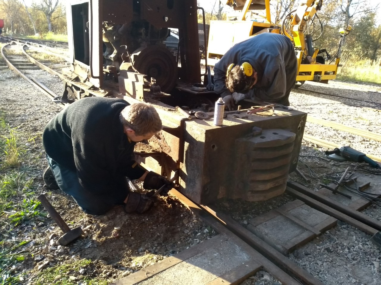 Opgaven fortsættes, da værktøjet ikke klarede at løsne de sidste 4 bolte, idet vor eneste 32mm stjerne-gaffelnøgle i banevognen knækkede