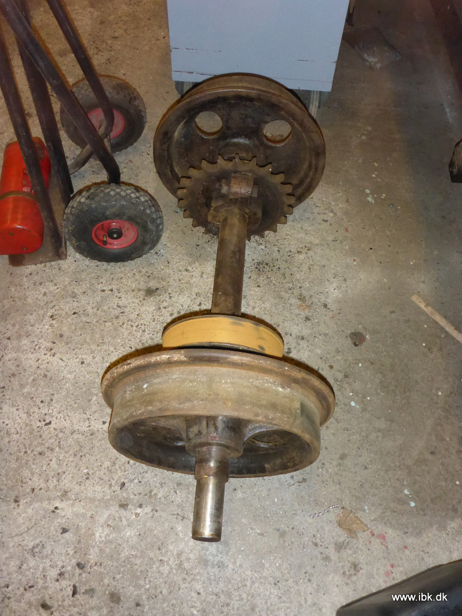 Den nye beboer i værkstedet, M4, er allerede blevet adskilt en hel del; Onsdagsholdet havde afmonteret motorhus, tank og andre løsdele. Denne mandag aften gik derfor med at løfte topstykket af. Lokomotivet blev kørt over under portalkranen og da det var afmonteret, så kunne vi let se at der havde været vand i motoren. Den ene cylinder er belagt med rust og der ses også rust andre steder. Det ser dog ikke uopretteligt ud, så resten af motoren blev hevet op af rammen og gearkassen blev afmonteret. Delene bliver på lørdag transporteret til motorværkstedet, hvor en gennemgribende istandsættelse vil blive påbegyndt. Jeg fik desuden afrenset endnu et hjulsæt fra T1 og Niels fortsatte med at beskrive planerne for snedkerværkstedets istandsættelse. En fin og kold aften med 6 mand i gang og et par folk på kort visit.