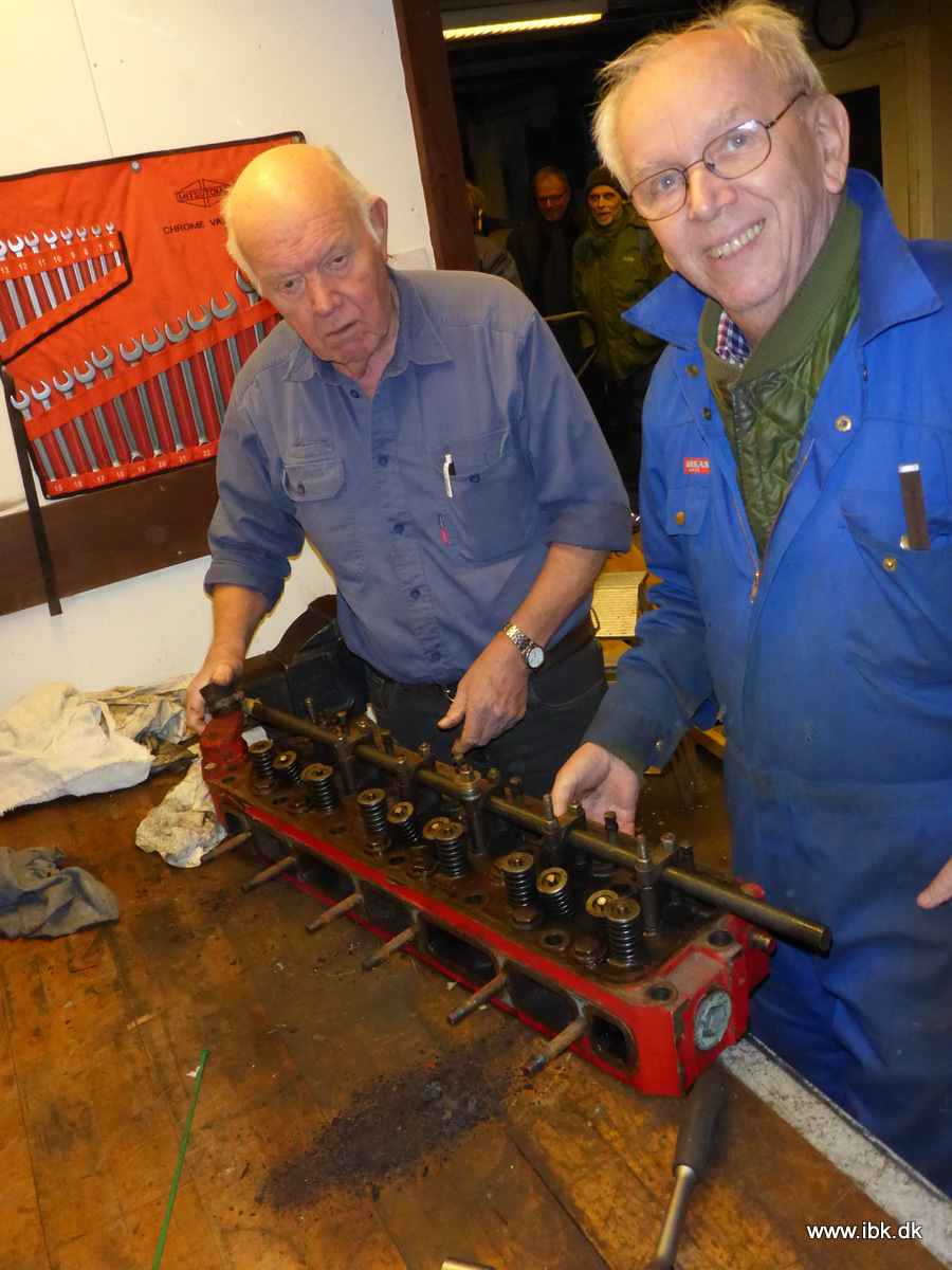 Motoren til M4 er nu flyttet til motorværkstedet, hvor der ud over værktøj, godt lys og god plads også samtidig er varmere. Om det var derfor Niels og jeg havde lokomotivværkstedet helt for os selv, skal være usagt… Motoren fik afmonteret bundkar, stempler m.m. og der ser ud til at rusten blot skal hones bort. Topstykket er også under adskillelse, så ventilerne kan blive efterset. Grundlæggende er motoren i god stand, da den stort set aldrig har kørt i sin tid som nødgenerator.