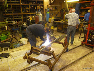 Til arbejdet med kedlen til No3 er der blevet fremstillet en ”kedelvender”, der er klar til vi får et røgkammer retur fra valsning. Den skal anvendes til nemt at kunne rotere hele kedlen, når der skal bores huller i røgkammer og rundt kedelens kant til nitterne. Mikkel arbejdede også på en ”motorvender” – et motorstativ til M25´s motor og Peter drejede dertil et par dele, der skal bruges dertil. M25-holdet har nu gennemgået og fundet 4 gode topstykker med bedre godstykkelse end dem der sad på. Der skal nu tilpasses ventiler m.m. så der er mange gode opgaver, som venter forude. Carsten afmonterede hjulene fra deplorid-rammen og overlod det til mig at få den lange vange klargjort til maling. Der måtte udvides lidt kreativt for at få det emne sandblæst. Det lykkedes og aftenen sluttede med et grundet emne. Carsten gik derefter i gang med at etablere trinbræt på M30. Lars fik drejet på kædetandhjulene til T1, så de snart kan varmes på akslen. Således fik vi 8 mand igen en herlig mandag aften til at gå med futtog! På lørdag er der generalforsamling. Der kan vi opdatere listen med alt det vi nåede i året der gik – og alt det vi ikke fik gjort…. Men der skal jo også være opgaver til næste gang vi mødes J