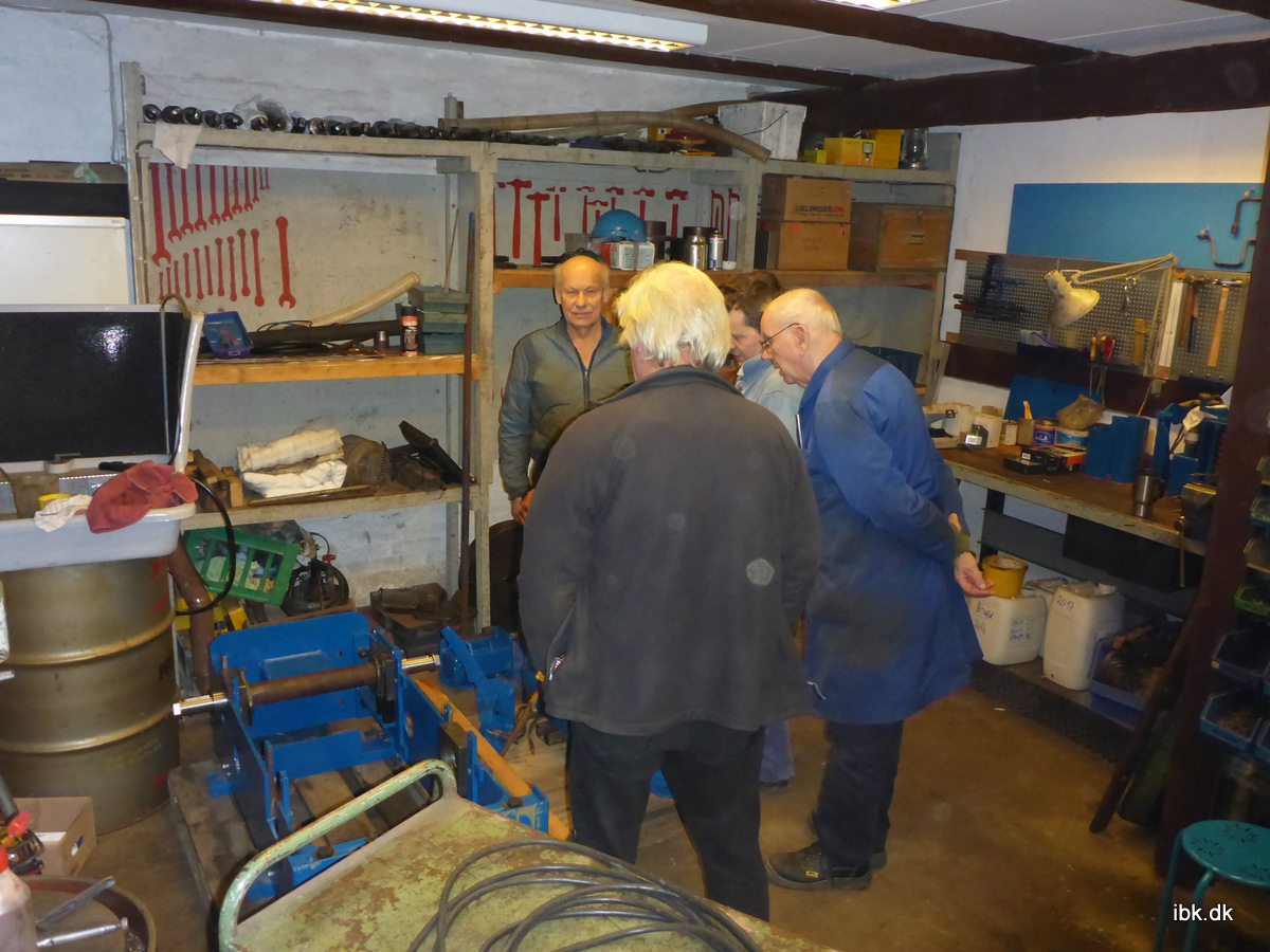 Afrensningsarbejdet på Superfos-maskinen blev fortsat, men der var også tid til at vise et muligt nyt medlem rundt på Gården, sammen med Bruno. De to kender hinanden godt og det er en mand der både har rodet med gamle Nimbusser og Mercedes veteranbiler, så nu mangler han bare nogen futtog på sit cv J Med udgangspunkt i et kedelcertifikat burde det være en enkel sag.