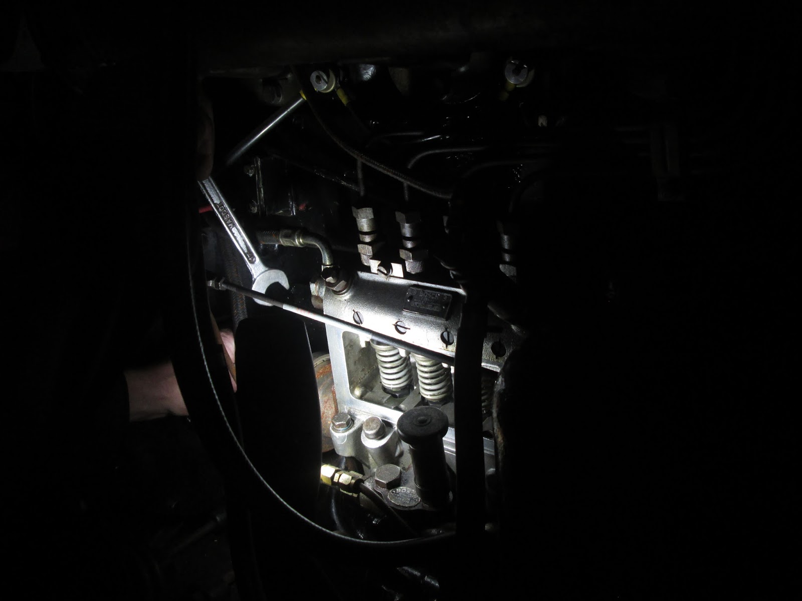 Efter en del mingeleren med at få måleudstyret tilpasset til den efterhånden aldrende dieselpumpe, kunne vi konstatere, at den var 5 – 8 grader for tidlig – eller for de teknisk interesserede: