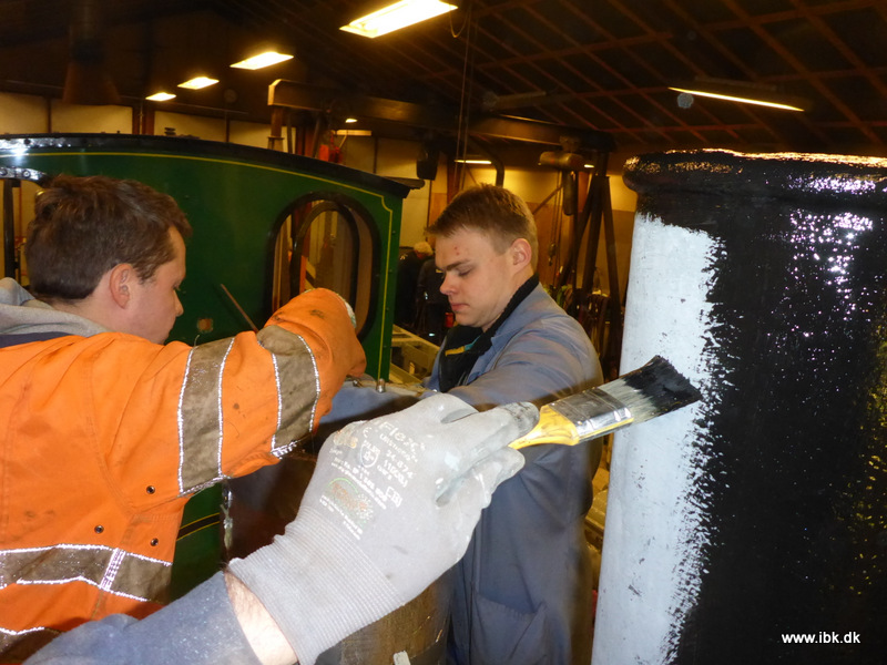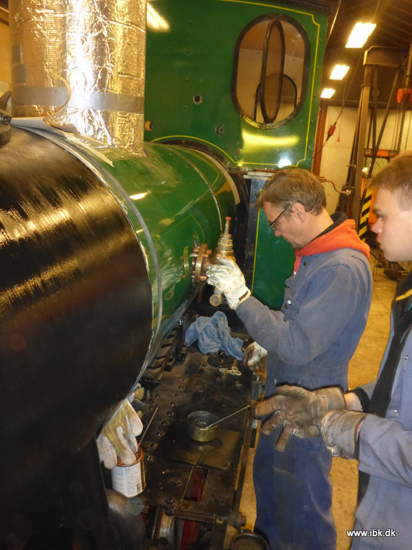 Med førerhuset tilbage på rette plads, så er det tid at få monteret armatur – ”juletræet” , rør og haner på No3. Det fik Bo, Peter og Lars aftenen til at gå med. Jeg fik samtidig malet skorsten, sikkerhedsventiler og røgkammer med varmefast sort.