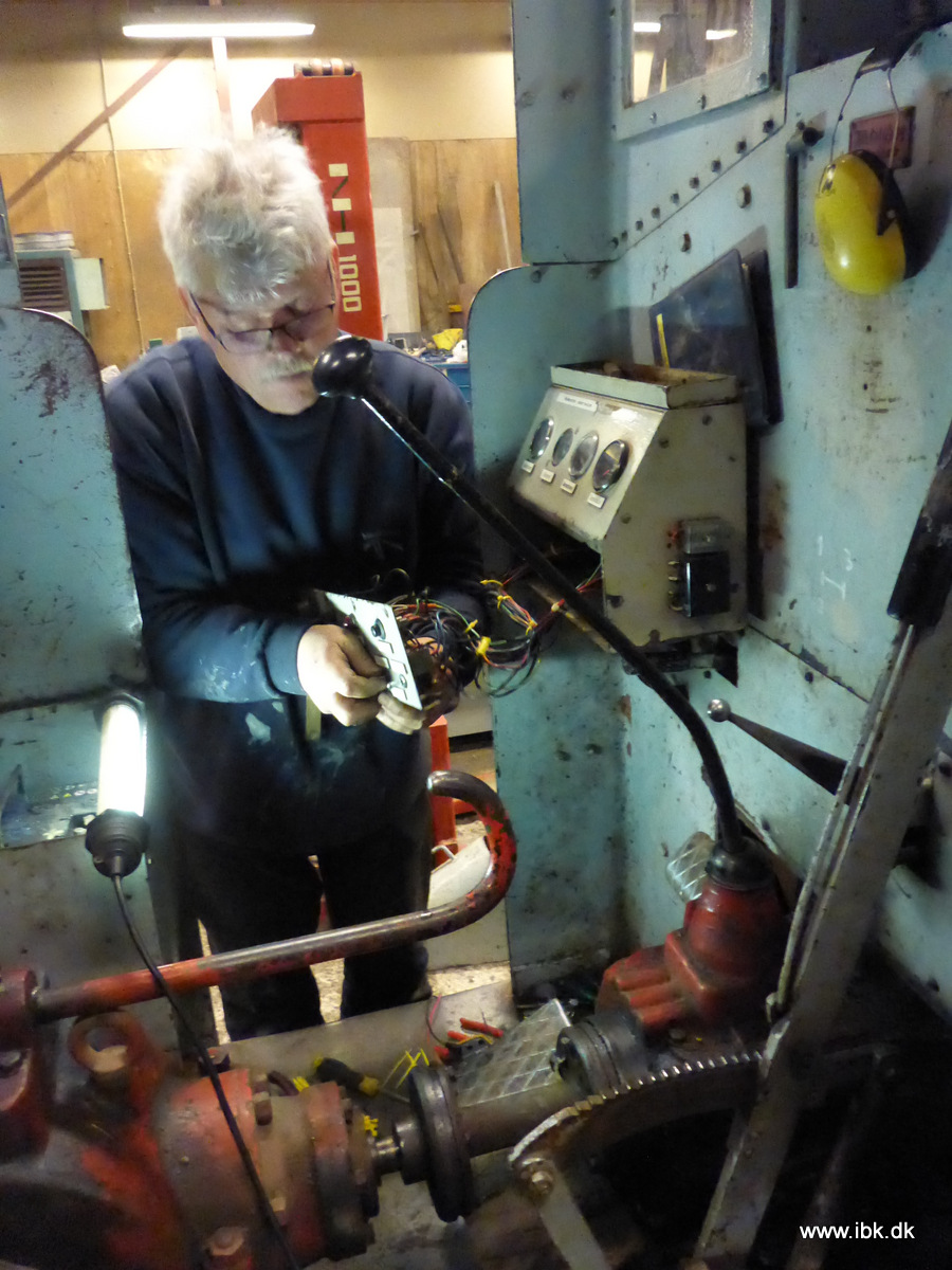 Bo, Peter og Carsten havde været på værkstederne hele dagen, så da vi andre mødte frem, så havde Bo fået drejet det indvendige, koniske anlægsflade for hanen til vandstandsglasset og Peter havde drejet de fire gevindtappe, som den skal monteres på. Desuden havde kedelbåndene til No3 fået en sidste omgang sort. Peter og Carsten fik så svejst beslag til gnistfanget på inde i røgkammeret. Carsten havde ellers arbejdet videre med motormontagen på T1 og repareret lejerne på vandpumpen. De gamle lejer havde smidt kuglerne… Remtrækket blev forsøgt aftrukket, men sad for godt fast. En justering af remhjulet blev dog gennemført, så den sidder korrekt i forhold til dynamoen. Vi fik pallen med en del af motorhuset fundet frem og en afmontering af kabler og litrering blev foretaget, så huset kan bliver repareret for diverse overflødige småhuller, afrenses og males. Jeg fik desuden sandblæst og grundet en del til speedertrækket og Carsten lagt et gulvpladepuslespil…. Mikkel hev M12 ind til eftersyn og Hans fik der repareret en fejl i lysstyringen. Nu virker både kort og langt lys igen korrekt – både for og bag… Mikkel måtte dog konstatere et par mangler, der kræver friske dele, så M12 er derfor meldt ude af drift de næste par dage. Per arbejdede på delene til M4´s køler, så den snart kan samles og komme på plads. 7 mand arbejdede på værkstederne denne 2. påskedag.
