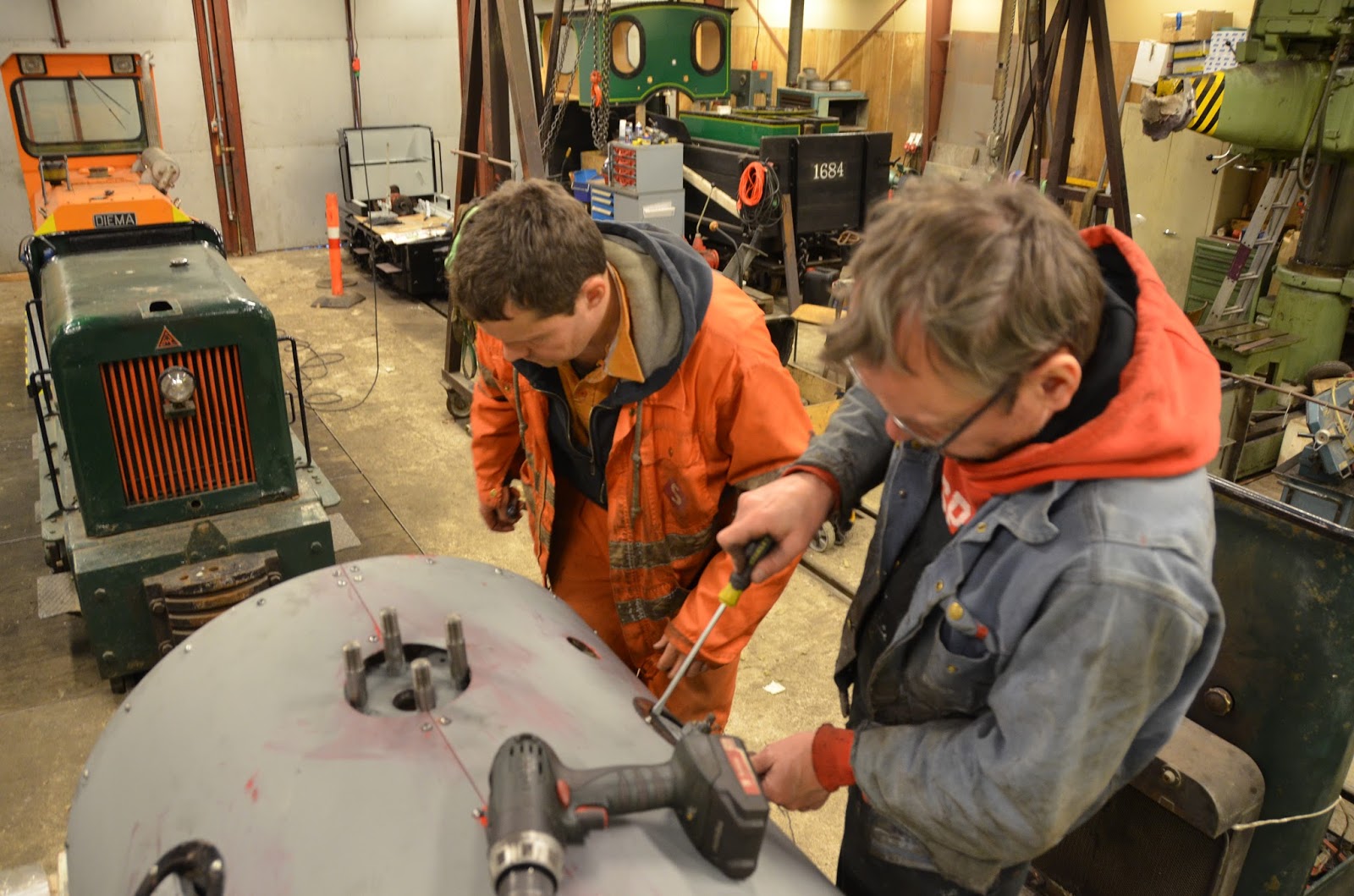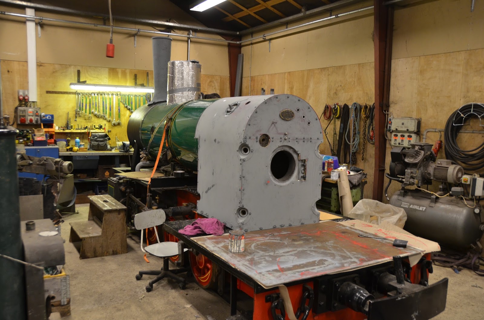I mens arbejde Bo og jeg videre på Vildmosen, hvor vi fik isoleret det sidste på kedlen og samlet beklædning helt og monteret den. Det blev fejret med en kop kaffe og en håndfuld pebernødder, inden de sidste dele fik en gang galvafroid, så kedelbeklædningen er klar til maling på mandag