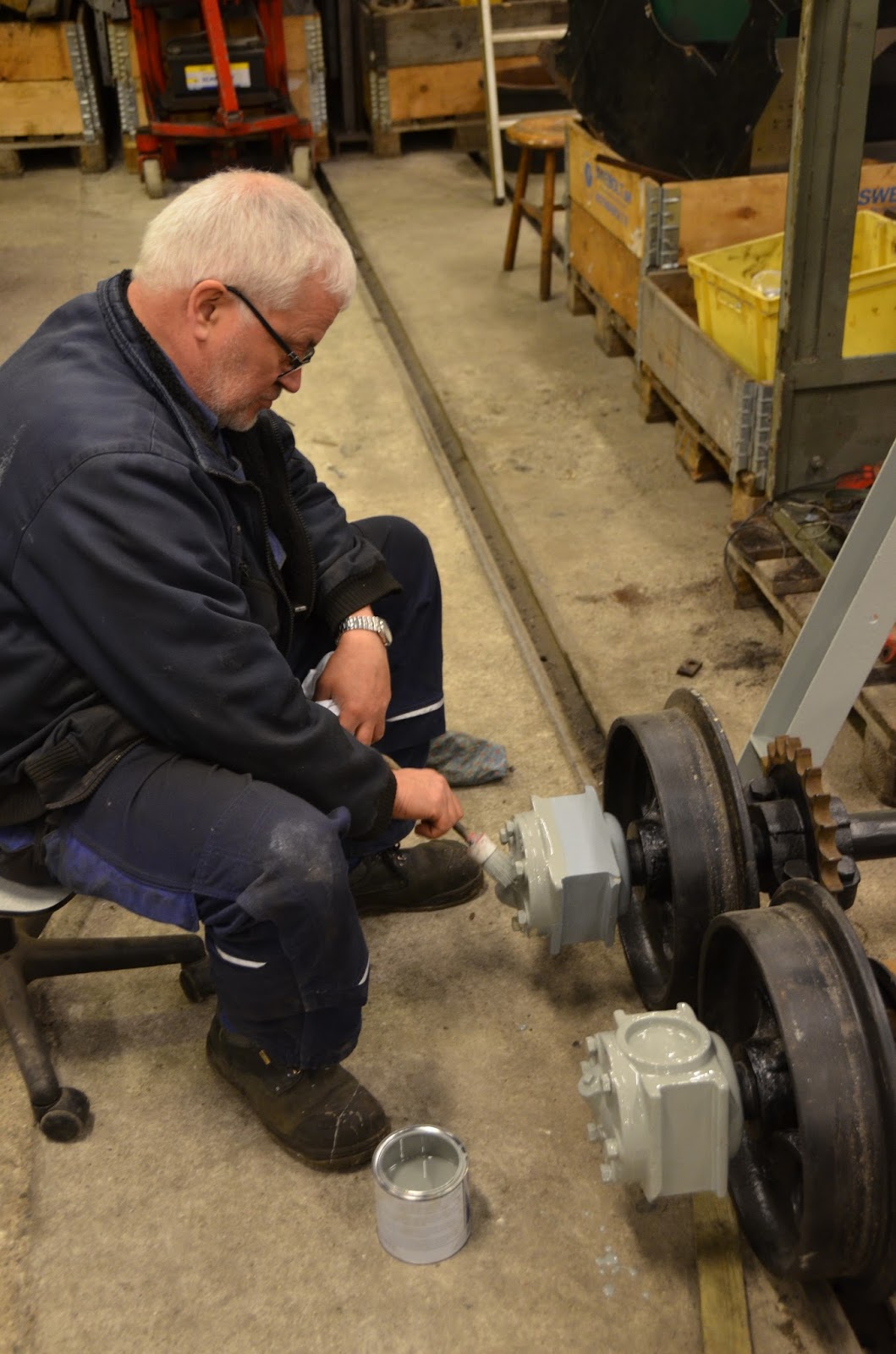Carsten arbejdede videre på T 1, hvor han fik afrenset nogle bolte og malet en del forskellige dele, deriblandt akselkasserne. Han havde i løbet af ugen i øvrigt også fået samlet vendegearet færdigt.
