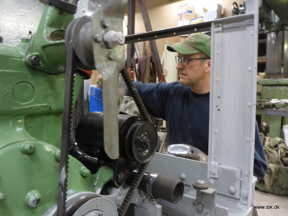 T1 er også kommet langt. Carsten og Anders justerede akslerne, så de nysmurte kæder blev korrekt tilspændt og derefter blev der malet div. Jeg fik afrenset endnu en gulvplade, samt rammen til tanken – der kort efter maling med Olsen-sort kunne genmonteres. Sidst blev holderen til sædet afrenset og grundet. Niels arbejdede ihærdigt med snedkerværkstedets indretning. Vi var 11 mand på værkstederne denne aften. Mon ikke vi når at blive klar til jubilæet?