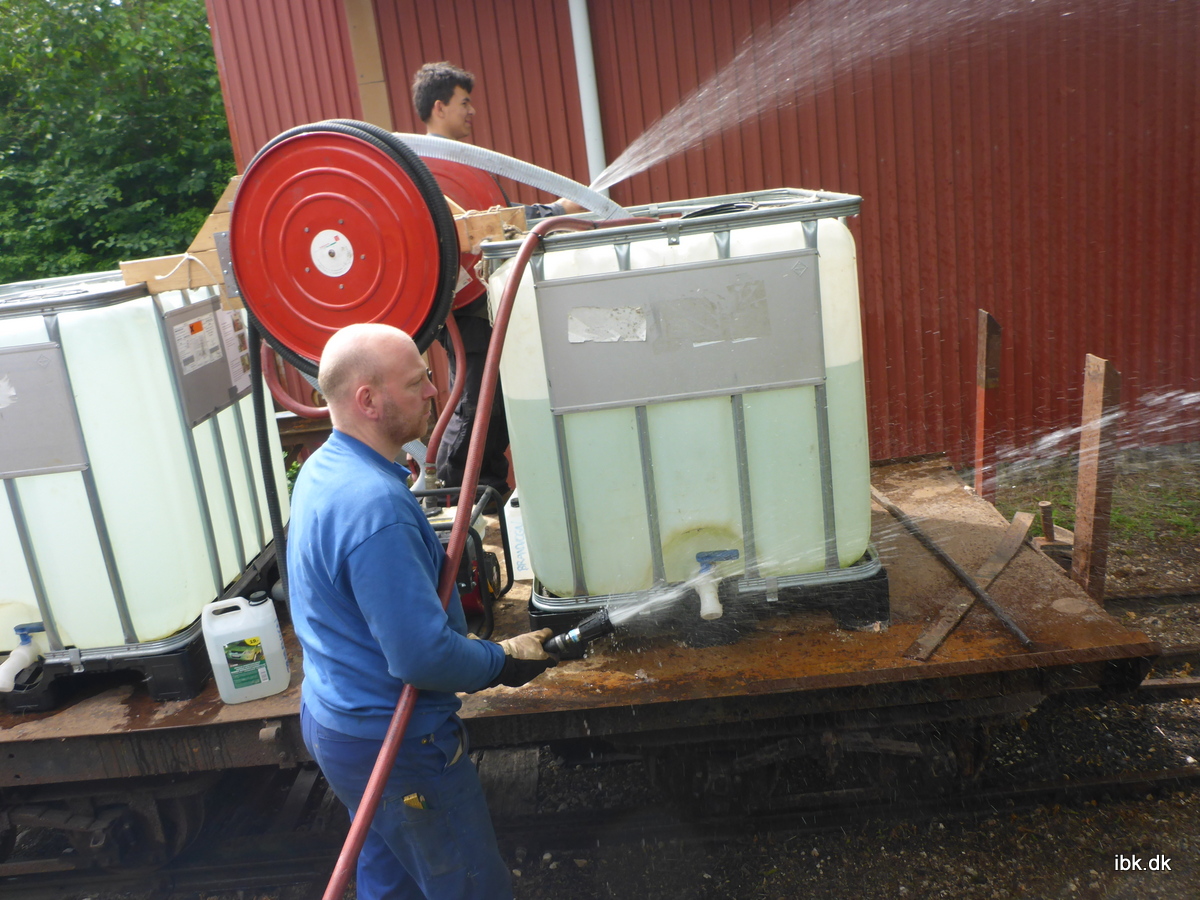Lørdag fik jeg malet de fire hjulsæt med Olsen-sort, som Kjeld havde afrenset. I mens fik Carsten færdiggjort affjedringen på første bogieramme, så den blev klar til grunding. Kjeld tog plads under C523 og spændte alle T-boltene og jeg gik ovenpå og malede stolperne en sidste omgang hvid. Bo fik bl.a. justeret vandstandsmåleren på No3 og gjort lokomotivet klar til søndagens tur. Bafd bestod lørdag af Kenneth og Benjamin, der fik klargjort og testkørt en ny, brugt plæneklipper, samt hentet brandvognen og fyldt tankene med vand, samt testet pumpen. Beredskabet er klar! Der var 6 mand i Mafd og 2 mand i Bafd – men de havde jo også været flittige fredag!