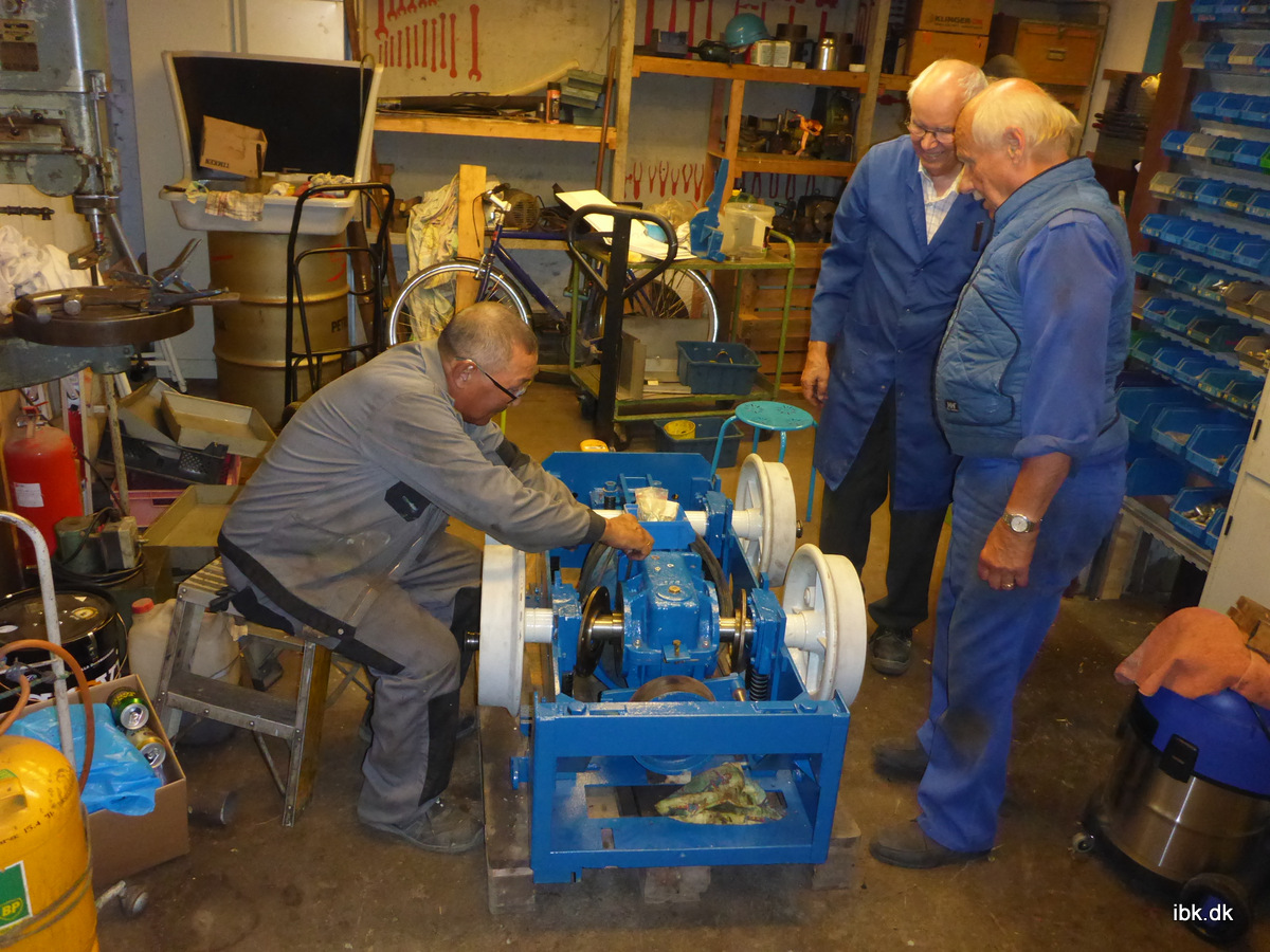 Med stort flid har Bo fortsat oprydningen i værkstedet og fået lagt de nye værktøjer på rette plads. Så kom E28-holdet og fortsatte deres arbejde fra i onsdags og fik med lidt mas hjul og gear samlet til en enhed igen ved brug af både kran og list. Det nærmer sig et tidspunkt, hvor E28 igen kan få egne skinner under hjulene igen. Dog skal en udfordring med lejerne ved kobbelstængerne løses. Mens jeg fik malet Superfos-lokomotivets førerhus en 2. omgang, så samlede Kjeld de nymalede dele til et flot juletræ. I den rigtigt træ-afdeling blev der skruet op for produktionen, idet der er indkøbt flere skruetvinger og med dem, samt boret et par supplerende huller i skabelonen. På den måde kunne Martin og Erik lime og sætte to buer i spænd samtidig. Således fik 9 mand tiden til at gå denne aften, hvor der endelig kom lidt regn igen…