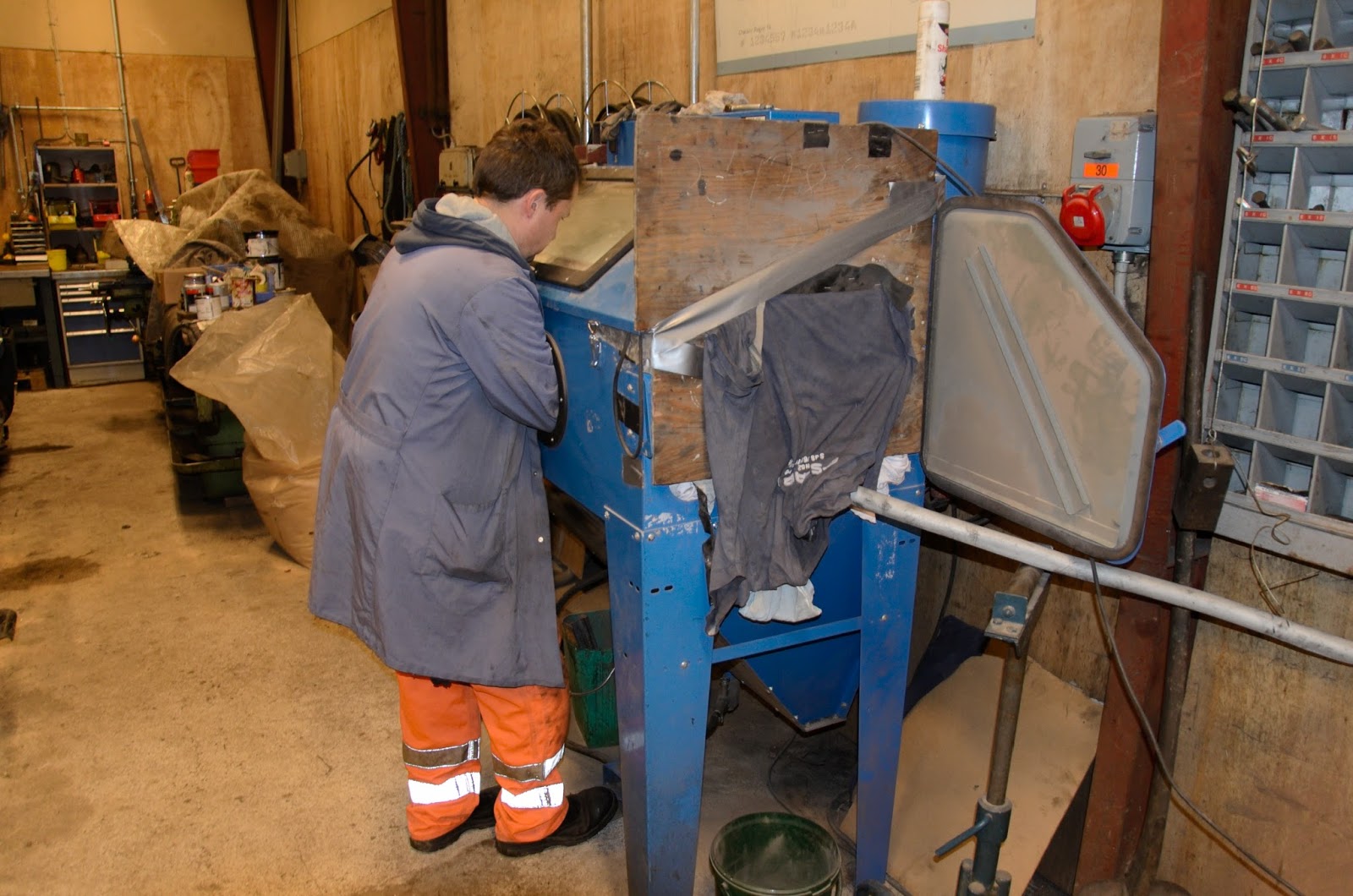 Carsten arbejdede på T1 hvor kommoden blev endeligt monteret. Lars fik sandblæst og grundet det ene sandrør.
