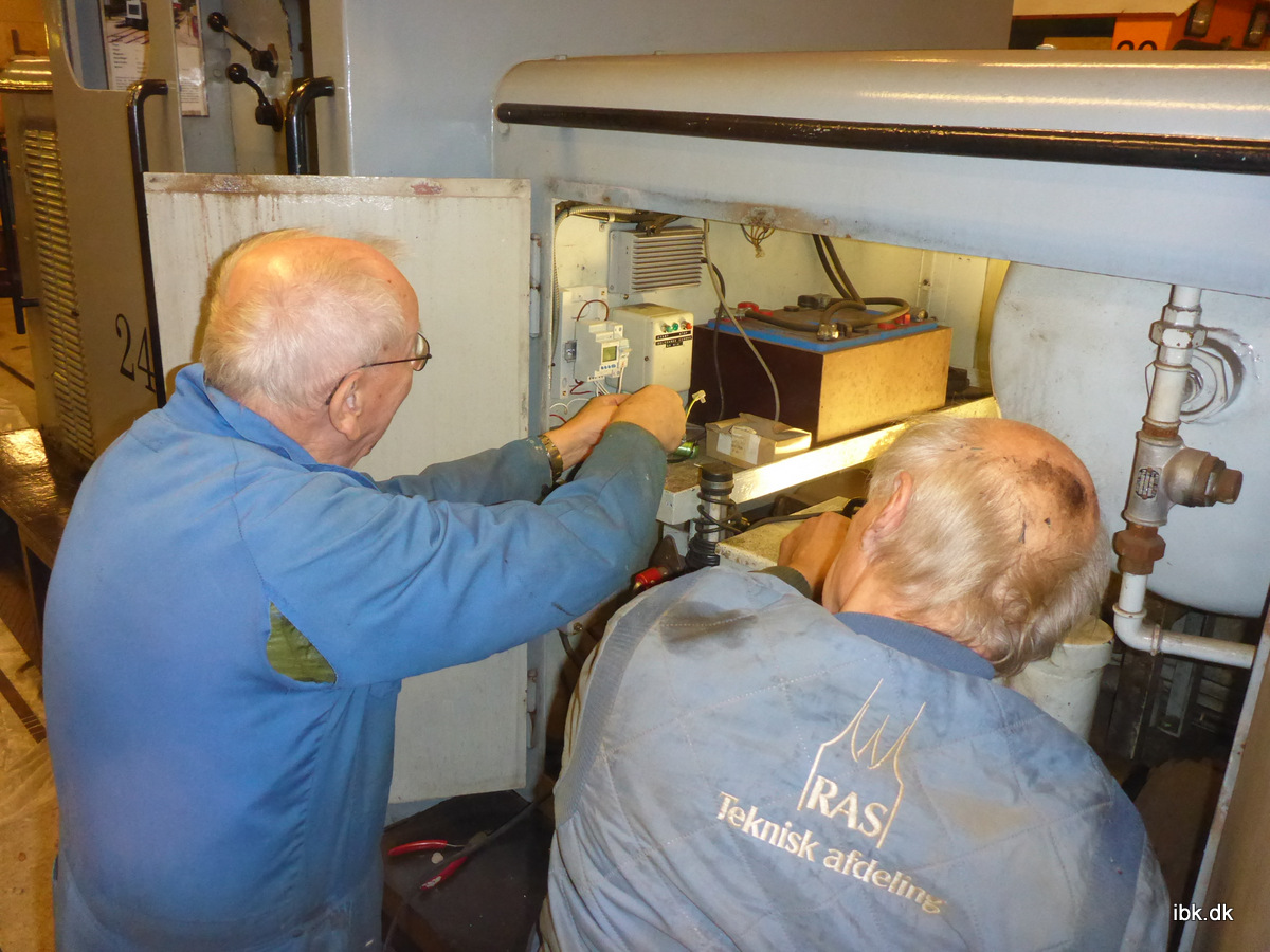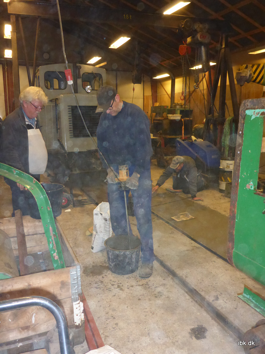 Kjeld, Hans og jeg fortsatte med at støbe gulv og fik til min overraskelse, brugt alle 4 poser… Nu holder vi en lille pause fra den opgave – det er trods alt en togklub og ikke et murerfirma. I mens vi reparerede gulv, så måtte Per og Jan hoppe over for at komme rundt om M24, der fik installeret varmestyring og fyldt olie på oliepumperne til smøreanlægget, samt anden klargøring til juletrafikken. Det er jo lige om lidt!.
