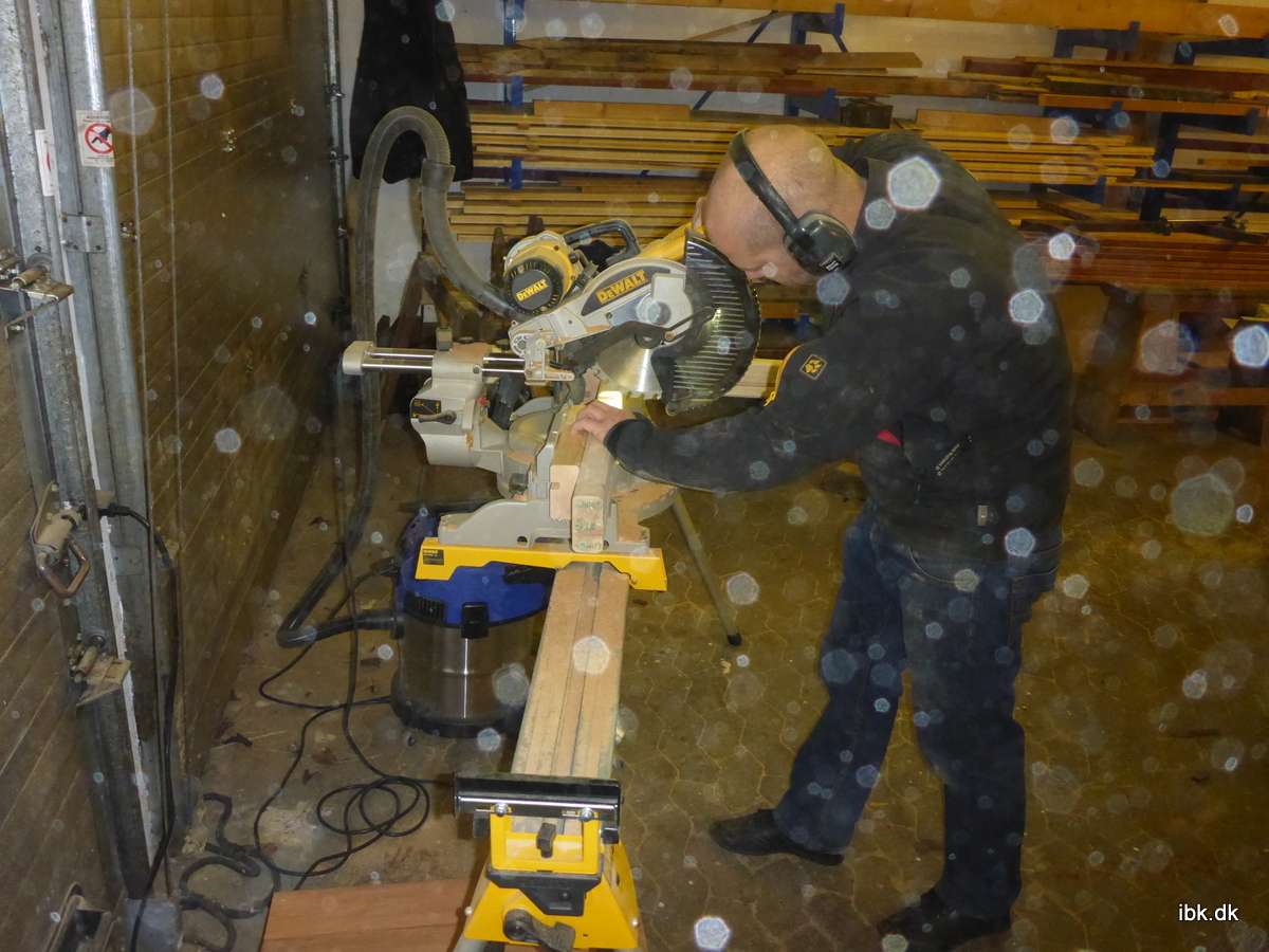 I snedkerværkstedet gav Martin håndlisterne de sidste udskæringer, før Erik gav dem en omhyggelig afpudsning. Carsten og Kjeld har givet den gas og har nu fået monteret alle de nye tagstolper på C523 og desuden udskåret en masse beslag. E28, der forleden fik begge de 100 kg tunge bundplader lagt i batterikassen, fik denne aften en nylakeret førerstol – som Hans havde givet en masse omgange lak hjemmefra. Jeg fik afrenset og malet rammen på den bogie, som er under renovering.