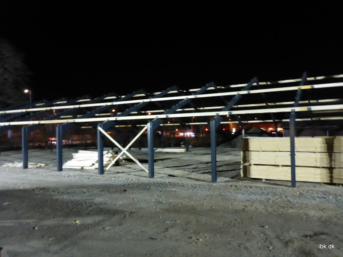 | Om morgenen kun et fladt fundament, om aftenen stod hele rammen af den nye ridestald klar! |