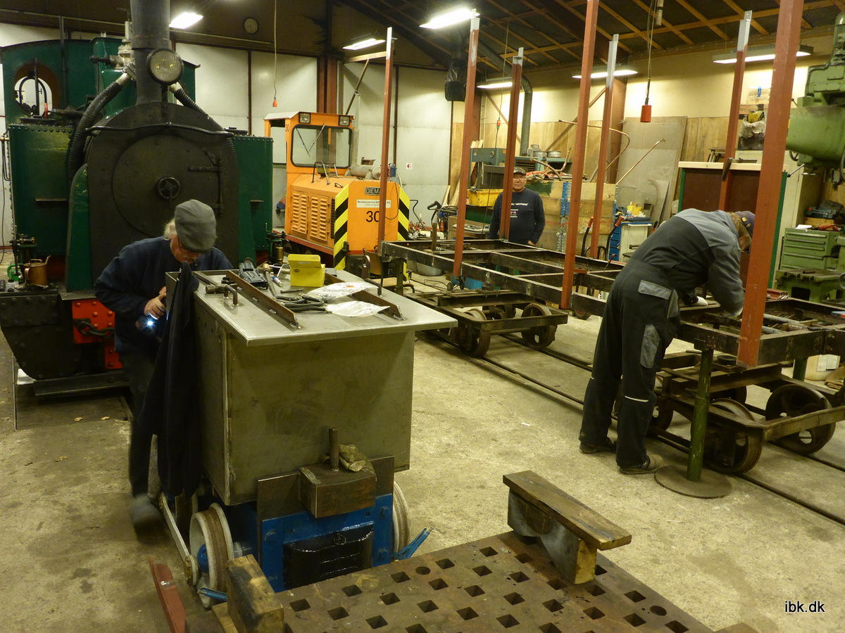 I snedkerværkstedet blev der arbejdet med en forbedret udgave af håndlisterne – og der blev malet værktøjsvæg! I det varme motorværksted fik D10-holdet udtaget og nummereret ventilerne, så de kan blive efterset. De ser ud til at være i fin stand! Niels fik både samlet fløjte-loddeholderen og monteret smørenipler i C523´s bogieruller. De skal sidde mellem ramme og bogie, så vognkassen stabiliseres – lidt. Vi var 12 mand på Gården denne sidste mandag før julehygge-aften!