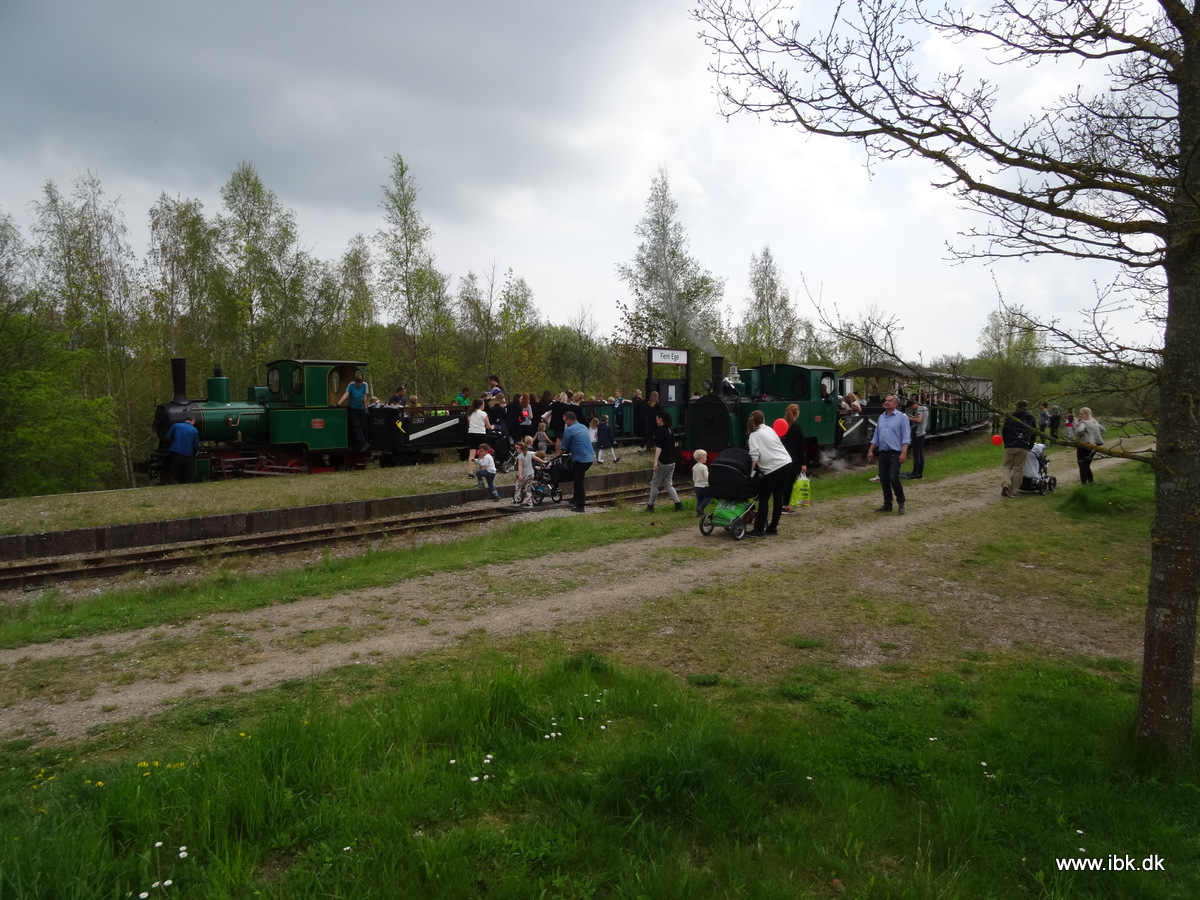 Som en herlig indledning på årets sæson og som en perfekt generalprøve før jubilæet den 20-21. maj, så havde vi fået bestilling på tog til 150 personer. Det kan der ikke være ombord på en vognstamme, så begge måtte i drift – og det blev med damplokomotiver foran! Så på en fin solskinsdag mødte vores gruppe op, bestående mest af børn, men der blev da også plads til de voksne og vi kørte afsted med over 200 ombord på de to tog – der er altid plads til flere, når bare det er børn…