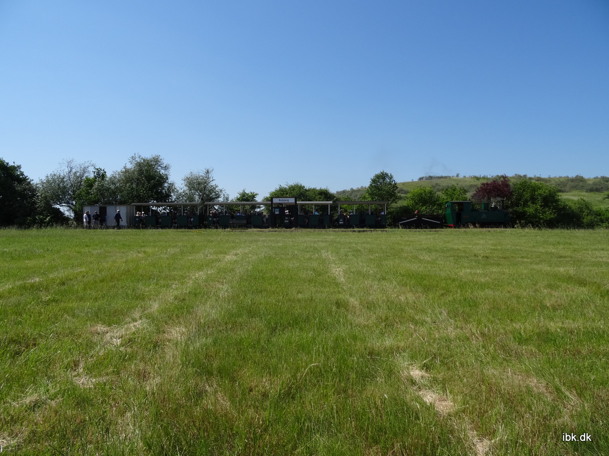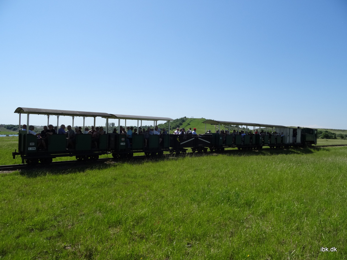I takt til dampslagene blev der spillet Jazz ud over sletten og med Rubjerg i baggrunden, gik turen til Rubjerg Station. Her blev orkesteret sat af, så de kunne gøre klar til vi kom retur fra vores pause-ophold på Fem Ege. Her kunne man få fyldt glassene og tage et hvil i skyggen af de fem egetræer og måske benytte sig af det lille hus… Således lettet gik turen tilbage mod Rubjerg, hvor alle steg af og begav sig til Lergraven. Her stod Fru Jensen klar med de fint indpakkede sandwiches og flere drikkevarer og mens orkesteret spillede, så kunne folket nyde de velsmurte madder i dejlig skygge.