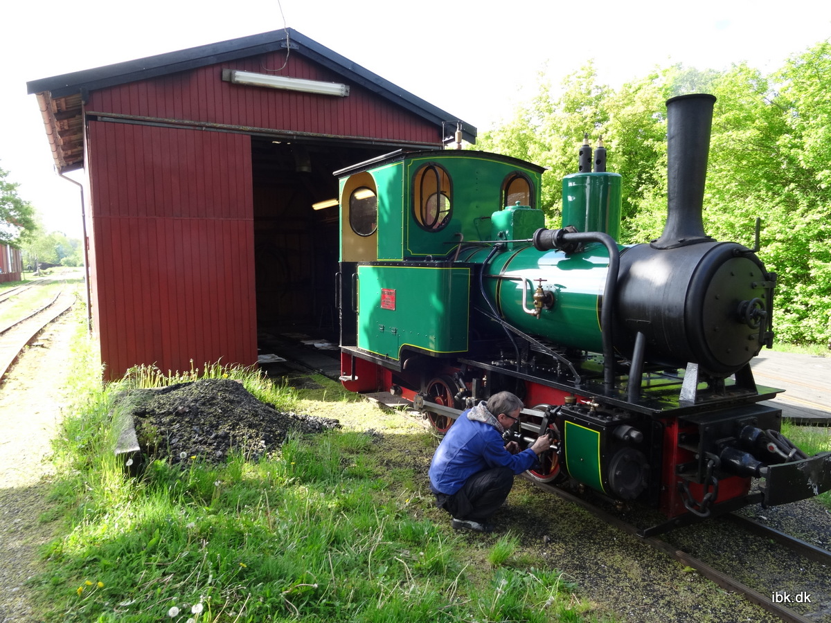 | Det er No3, der kører damptoget i årets første tog. Her er Bo lige ved at smøre det sidste før der kan hentes vogne. |