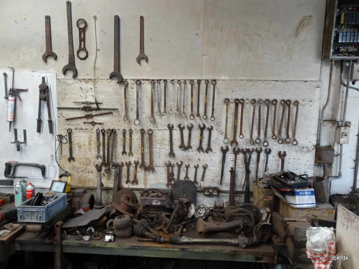 | Banen har et forbavsende lille værksted – uisoleret og lidt til den rodede side. |
