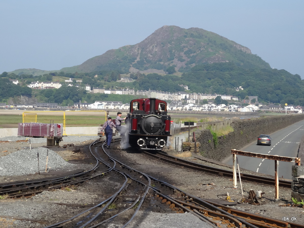 Beyer-Garratt Locomotive på vej over dæmingen til stationen i Porthmadog