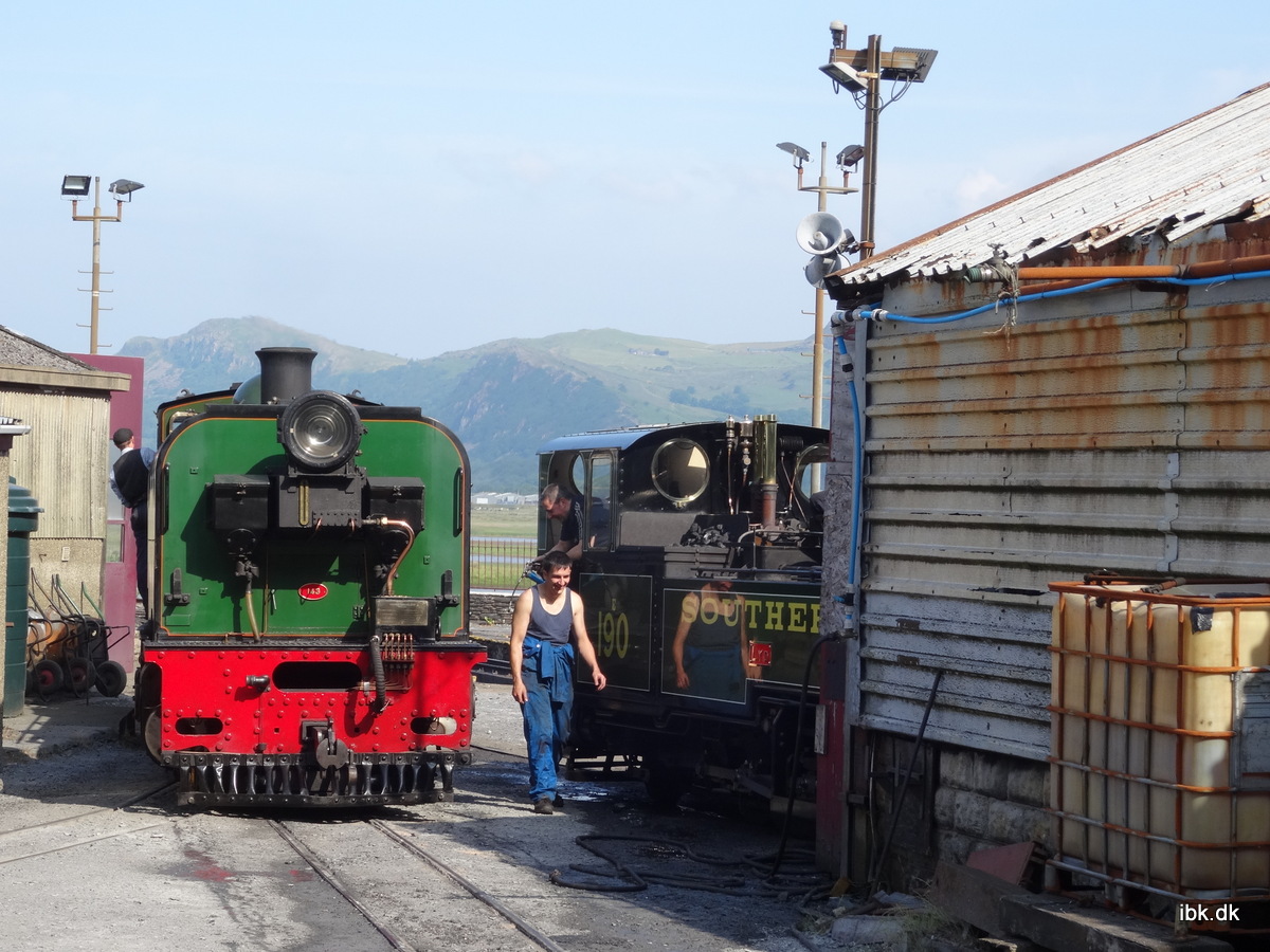Efter en fin middag og overnatning i Caernarfon, så gik turen om morgenen videre til Ffestiniog and Welsh Highland railway. Undervejs dertil gjorde vi stop ved et lille el-lomokomotiv, der havde kørt skifer… Næste stop blev på den centrale banegård i Porthmadog, hvorfra man enten kører over Snowdon til Caernarfon eller i den anden retning mod Blaenau Ffestiniog.