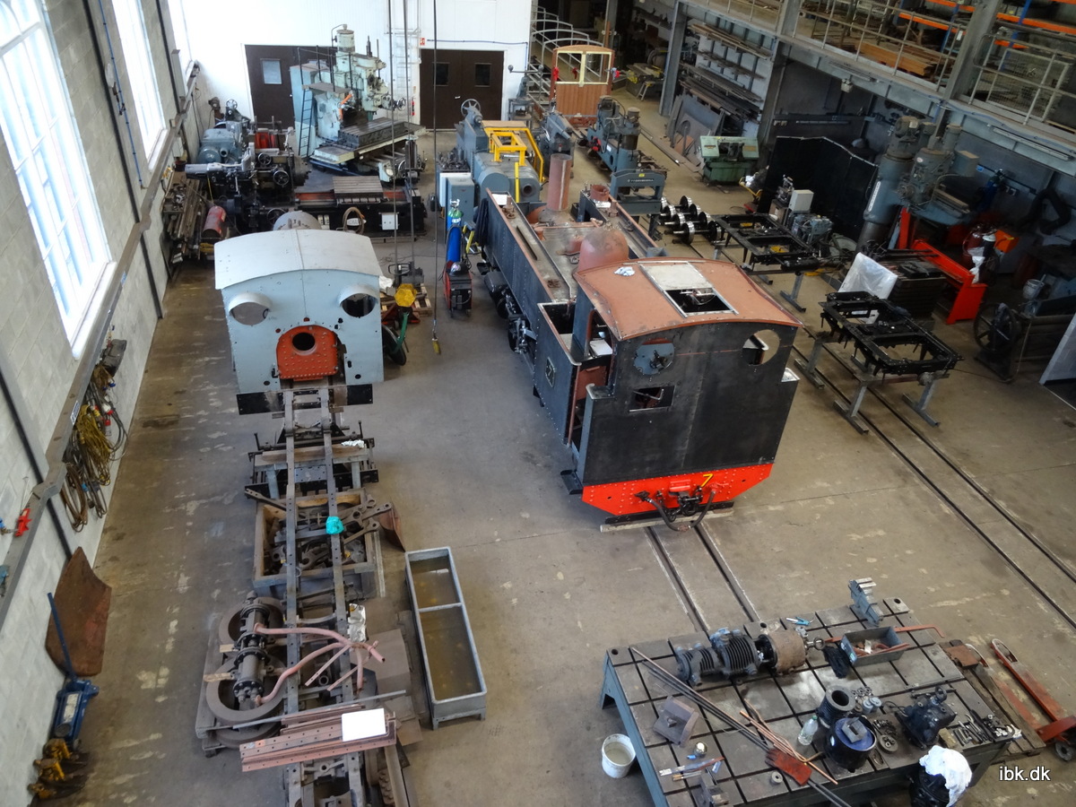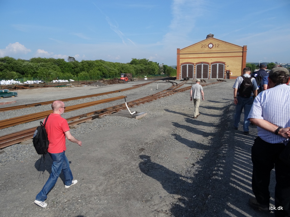 Vel nede på dagens sidste tur kunne vi følge med i rangeringen og nedrigning, hvorefter vi begav os til deres helt nybyggede remise og værksted. Hold da op hvor var det flot! En kraftig portalkran kørte over hele værkstedet og der var besøgsplatform i midten, så vi kunne overskue hele rummet. De restaurerer og nybygger både vogne og lokomotiver, så der var noget at se på. Efter endt rundvisning, så gik turen til vores overnatningssted – marine hotel i Aberystwyth , i hvilken der også kørte en mindre bjergbane op til et hotel. Den havde dog indstillet driften denne dag, så det blev kun et par fotos.