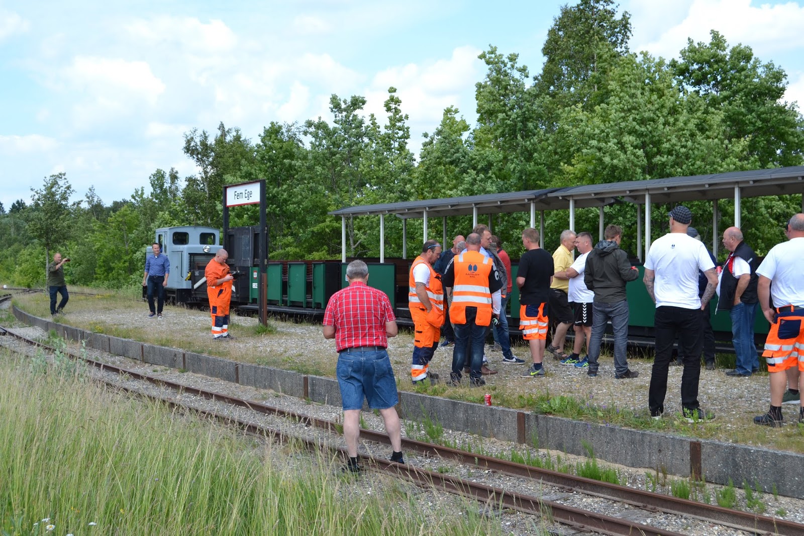 | Efter omløb på Fem Ege går snakken livligt mellem jernbanefolkene på perronen. Alle nåede med, da toget afgik. |